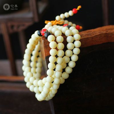 民族风它季新款108颗河马牙佛珠手链高品质蜜蜡祈福手串白色
